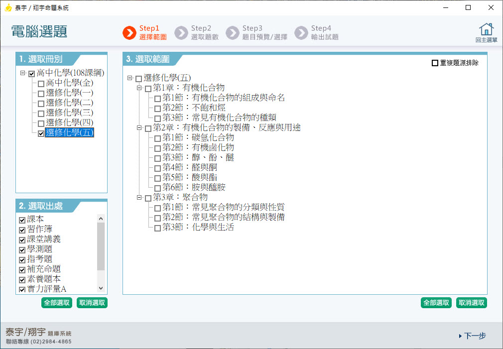 112學年上學期 高中命題光碟 泰宇版 化學科(全、選修一、選修二、選修三、選修四、選修五)(108課綱)題庫光碟